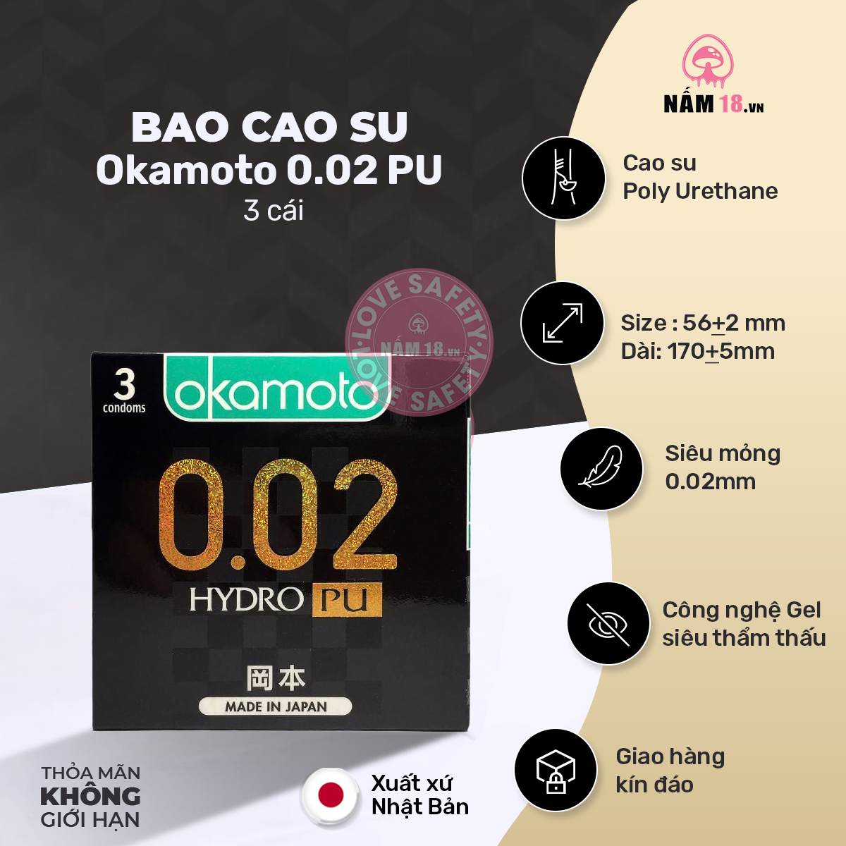 Bao Cao Su Size Lớn 56mm Siêu Mỏng Okamoto 0.02 PU