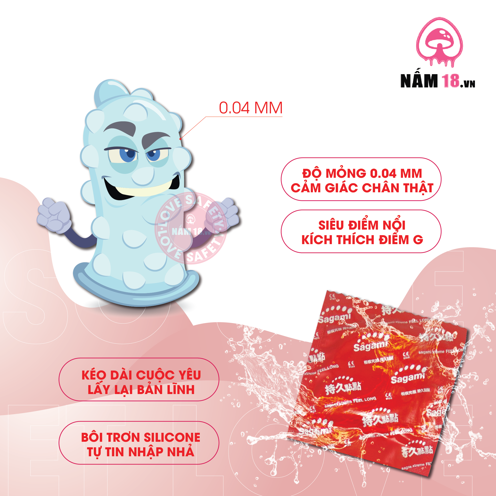 Bao Cao Su Sagami Xtreme Feel Long Kéo Dài Thời Gian, Siêu Điểm Nổi