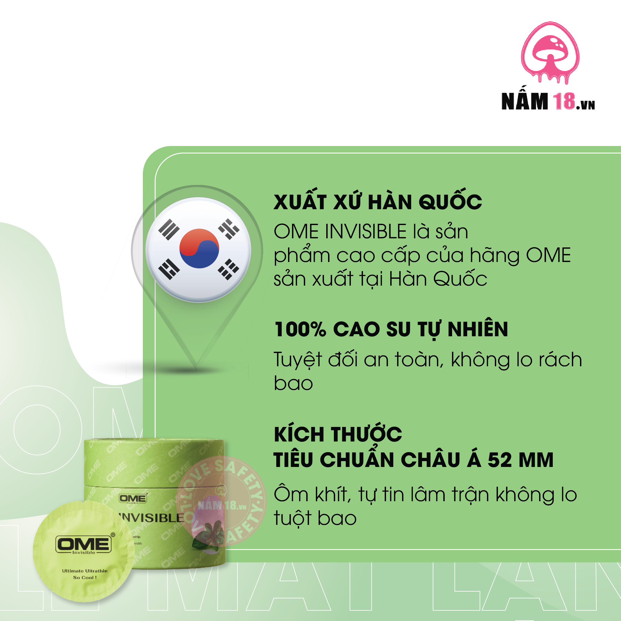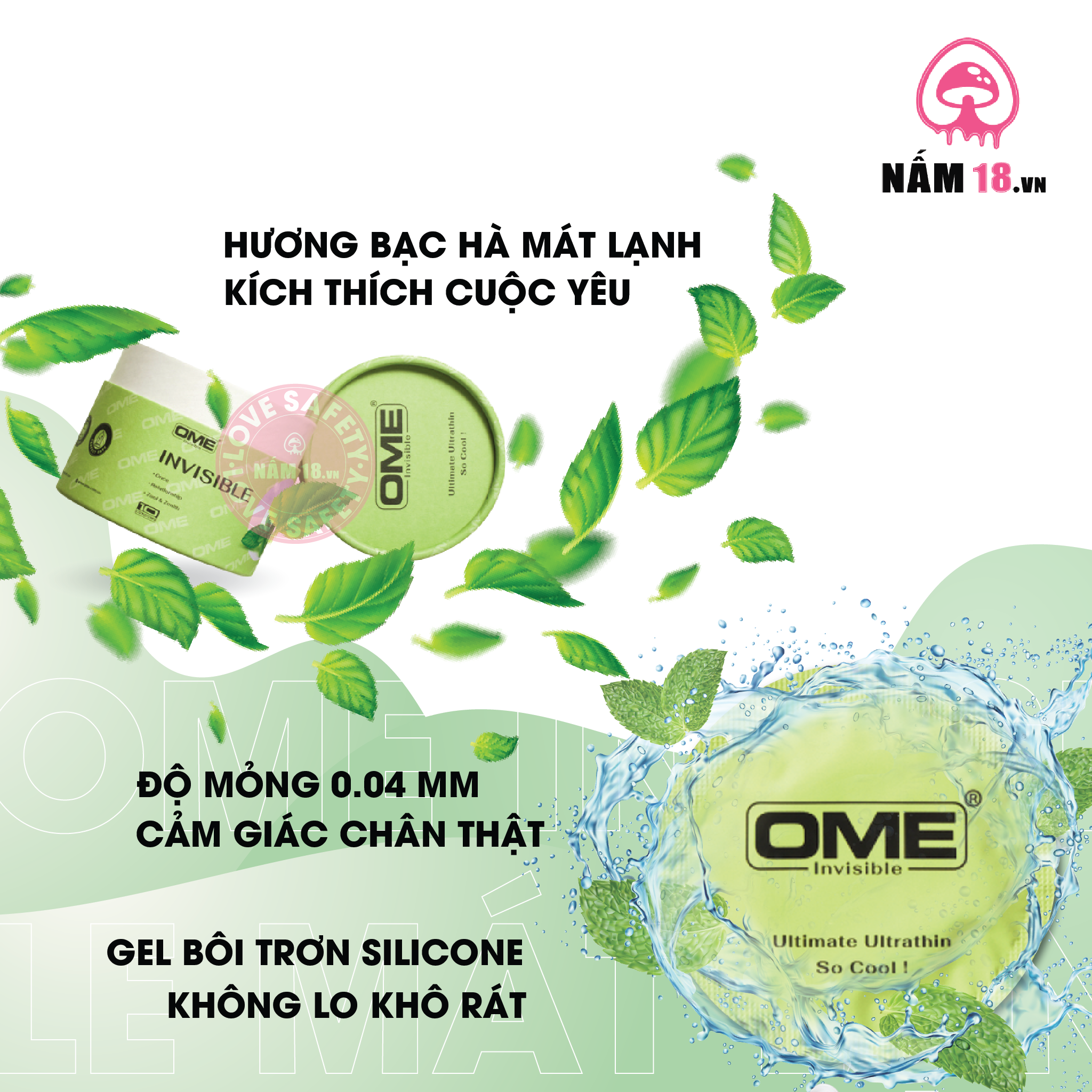 Bao Cao Su Siêu Mỏng Ome Invisible Mát Lạnh - Hộp 10 Cái